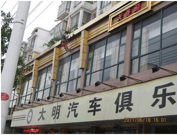 迪邦保潔公司人員正在為“大明汽車(chē)俱樂(lè)部”做外墻玻璃清洗。